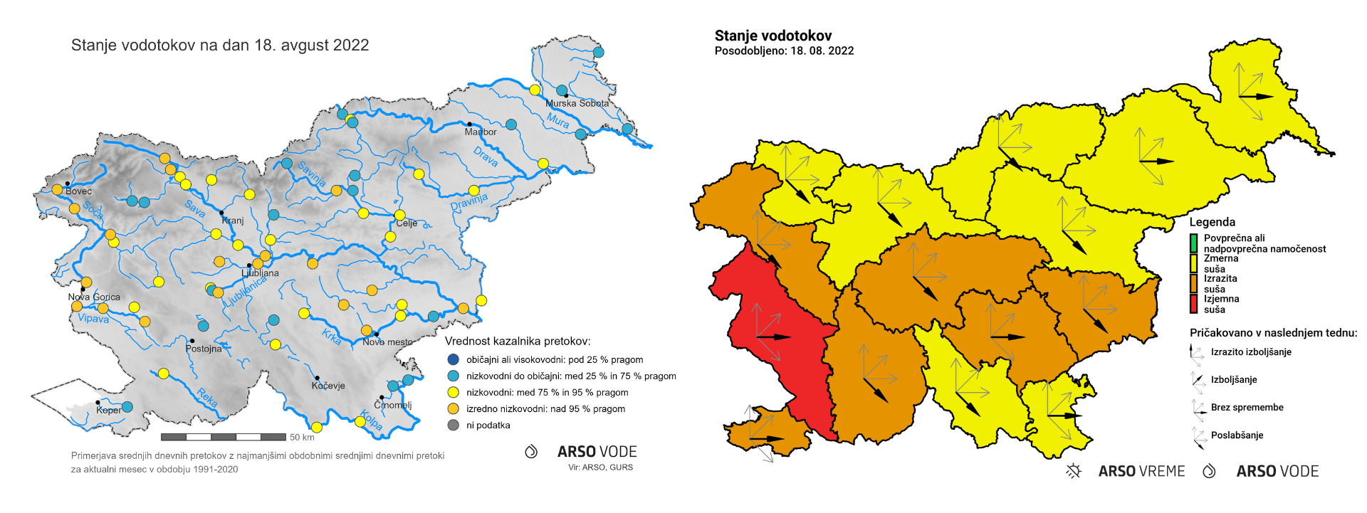 vode). Morebitne manj izrazite stopnje sušnih razmer, ki so ob tem prisotne, so razvidne z zemljevidov v