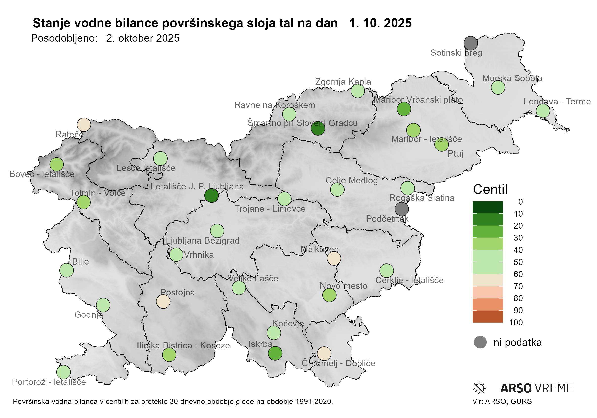 primerjavi s 30-letnim obdobjem, 100. percentil pa »najbolj sušno« vrednost (najmanjšo beleženo